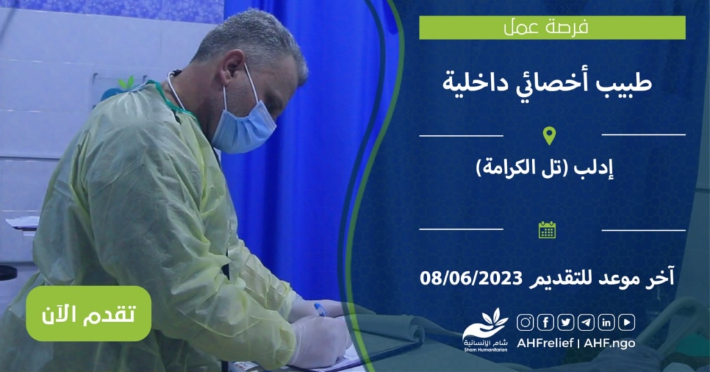 فرصة عمل : طبيب أخصائي داخلية