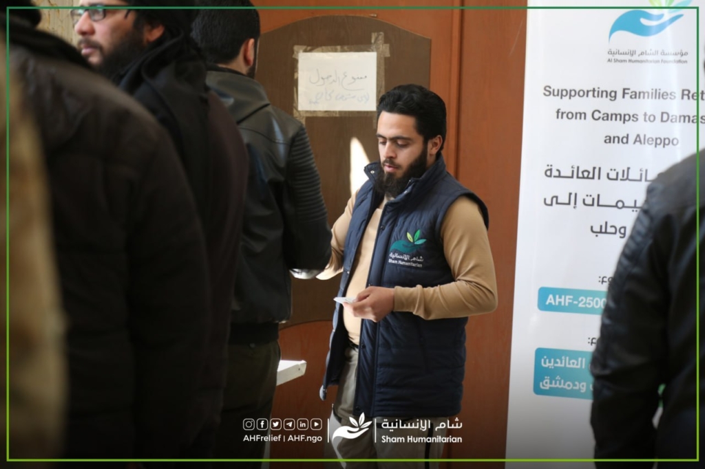 توزيع مبالغ مالية لدعم العائلات العائدة من المخيمات إلى دمشق وحلب.