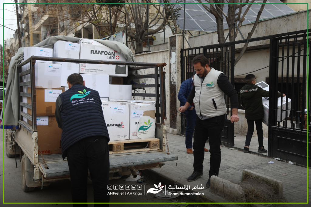 جانب من عمل فريق #مؤسسة_شام_الإنسانية على تزويد مراكز الرعاية الصحية الأولية(الجلاء – الشهداء -الزبدية) داخل مدينة #حلب بالأدوية والمستهلكات الطبية