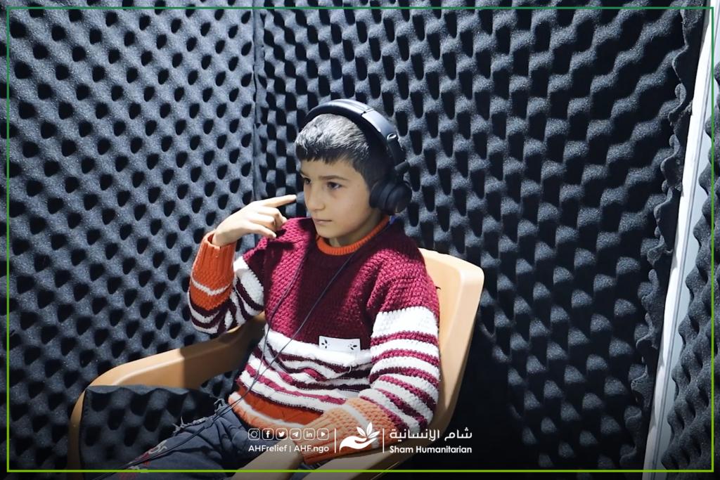 مؤسسة شام الإنسانية تقدم السماعات الطبية للأطفال الذين يعانون من نقص شديد في السمع.