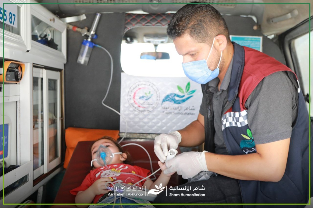 جانب من عمل فريق منظومة شام الإسعافية في منطقة الأتارب غرب حلب
