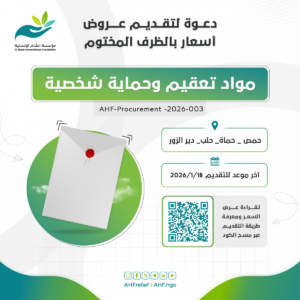 إعلان مناقصة : مواد تعقيم وحماية شخصية